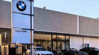 ブラックを基調にした全面ガラス張りのショールームを完備した、MINI ディーラーです。